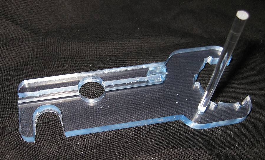 Und dann noch ein Sackloch, damit der Ausdrücker (ein 4mm Plexi-Rund) von unten in den Düsenstock gedrückt werden kann.