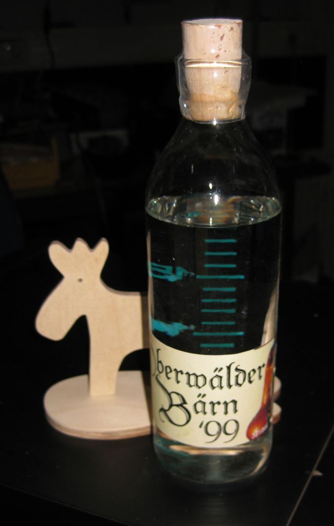 Erstmal die 10 Jahre alte Birne in die Flasche gefuellt.