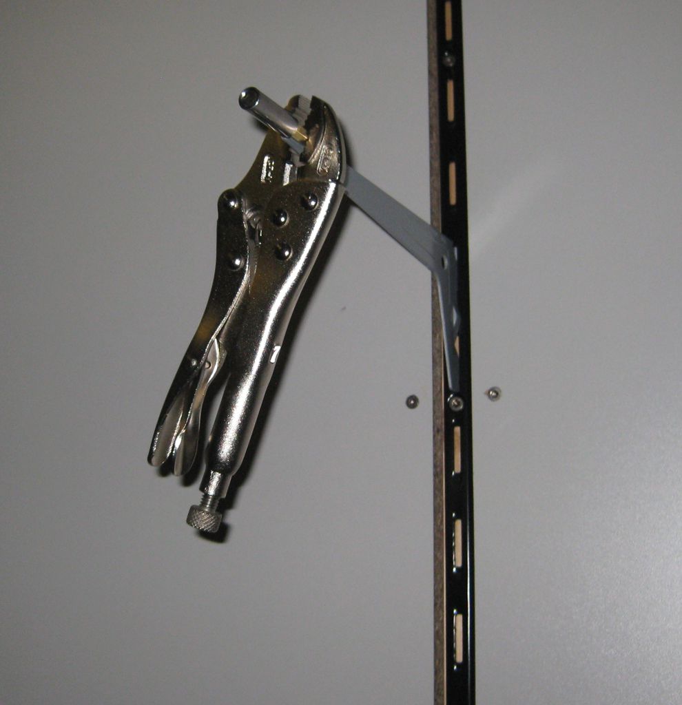 mit ner Crimpzange an einen Regalhalter befestigt.